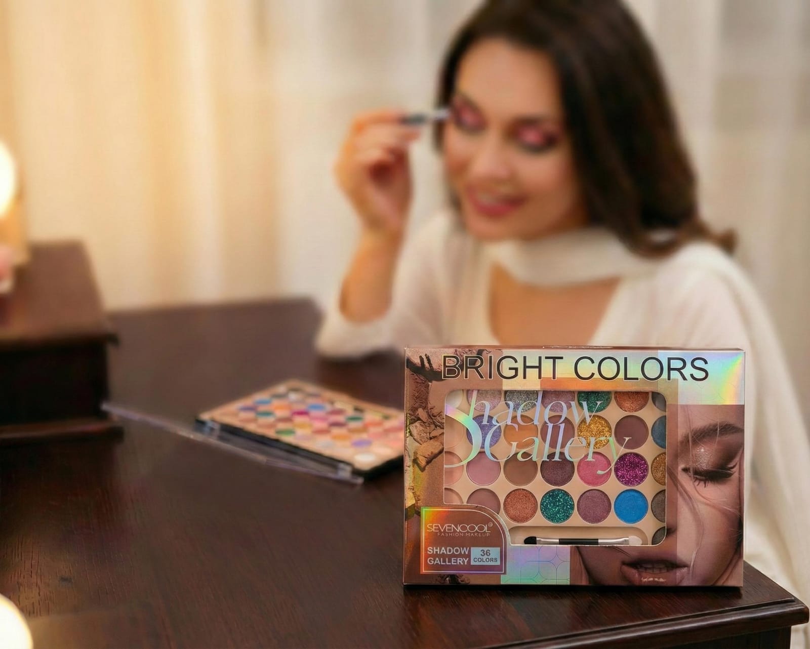 Perfect 👍 This is a 36 Color Eyeshadow Palette (Bright Colors – Shadow Gallery). Looks like Seven Cool Shadow Gallery – 36 Colors from the packaging.