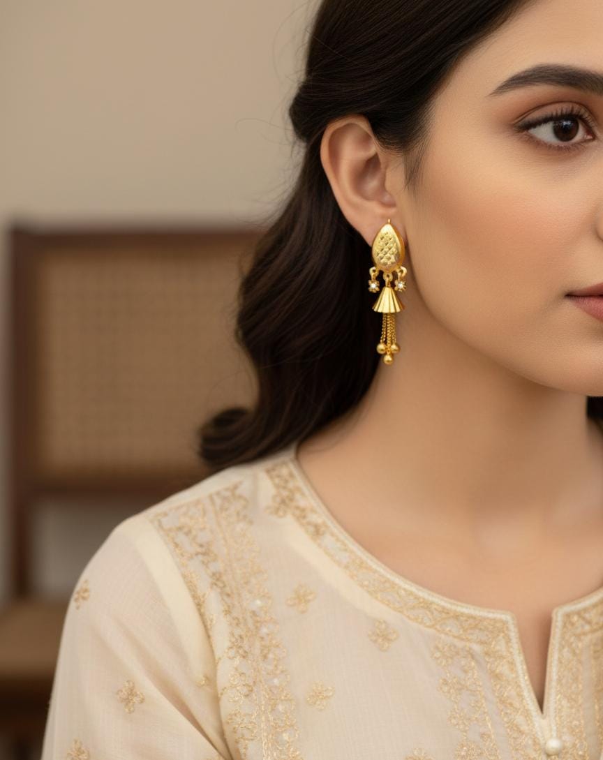 Perfect for weddings, festive celebrations, cultural events, and traditional ceremonies, these earrings pair beautifully with kurtas, sarees, lehengas, and ethnic ensembles. Their warm gold finish enhances both neutral and richly embroidered outfits, making them a versatile festive essential.
